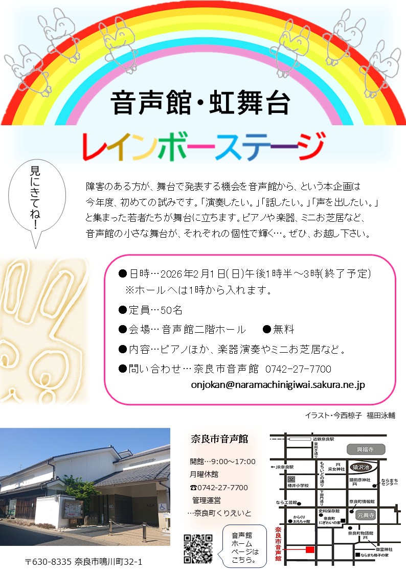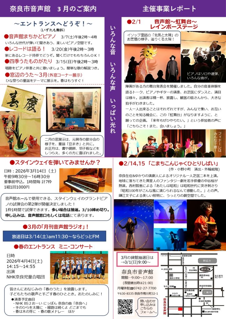 奈良市音声館の館内には各種公演に適したホールのほか、各種練習・会合に適した部屋が複数設けられています。